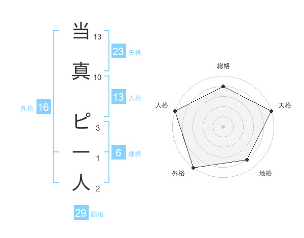 当真 ピー人さんを姓名の画数から五運を鑑定