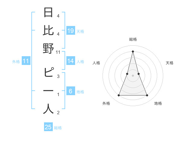 日比野 ピー人さんを姓名の画数から五運を鑑定