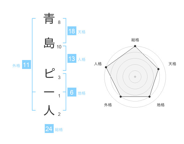 青島 ピー人さんを姓名の画数から五運を鑑定