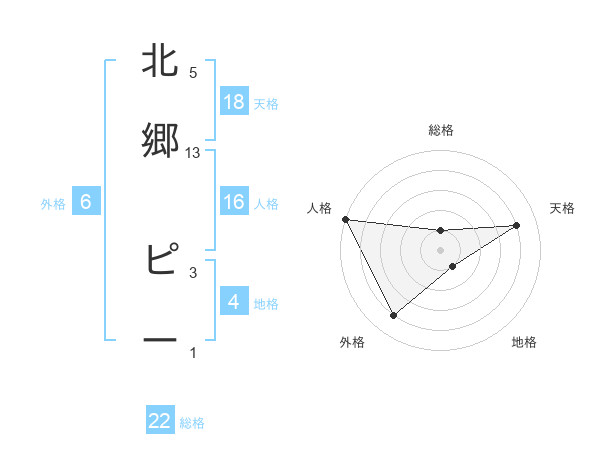 北郷 ピーさんを姓名の画数から五運を鑑定