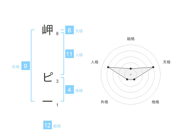 岬 ピーさんの総格は12画の1点!