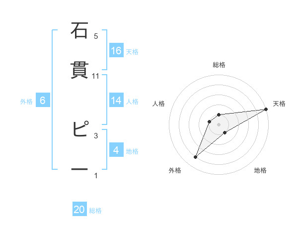 石貫 ピーさんを姓名の画数から五運を鑑定