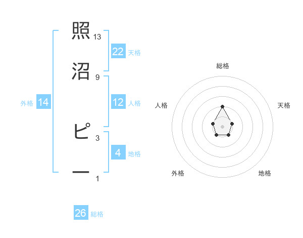 照沼 ピーさんを姓名の画数から五運を鑑定