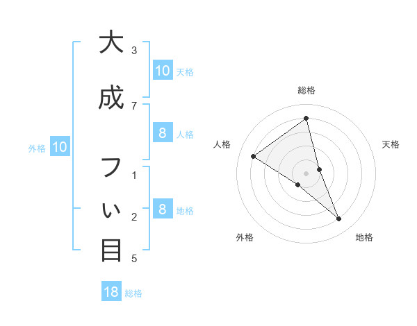 大成 フぃ目さんを姓名の画数から五運を鑑定