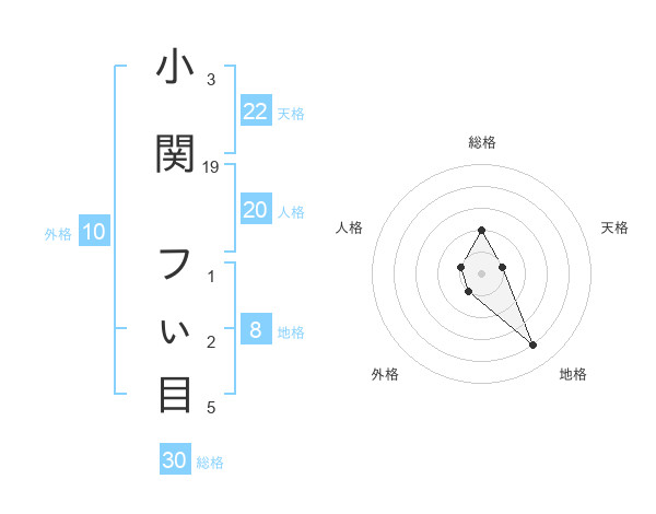 小関 フぃ目さんを姓名の画数から五運を鑑定