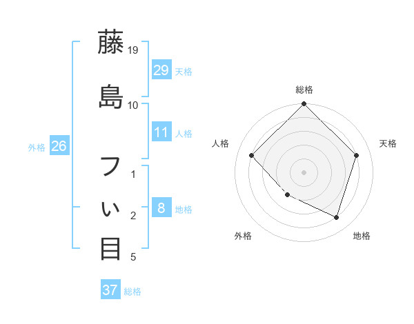 藤島 フぃ目さんを姓名の画数から五運を鑑定