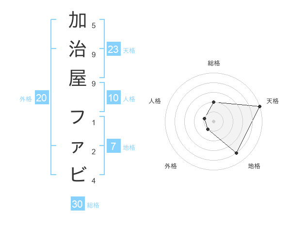 加治屋 ファビさんの天格は23画の5点!