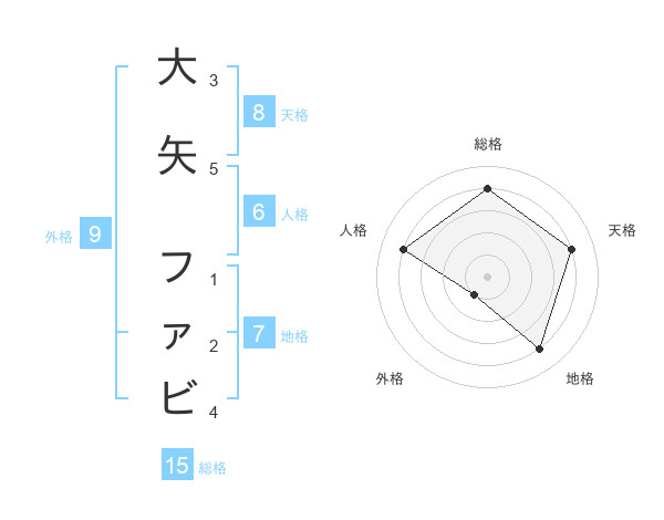 大矢 ファビさんの総格は15画の4点!