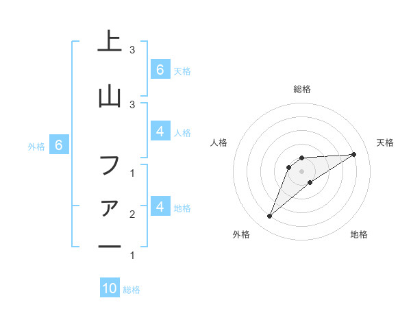 上山 ファーさんの天格は6画の4点!