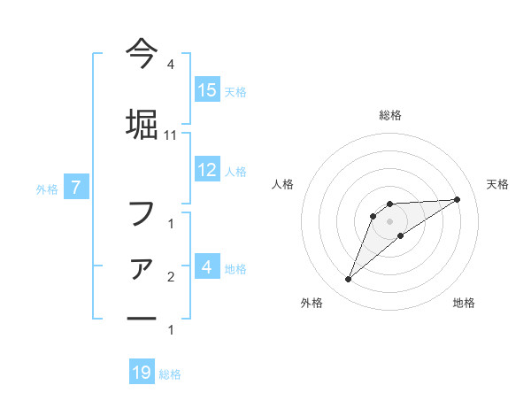 今堀 ファーさんの総格は19画の1点!