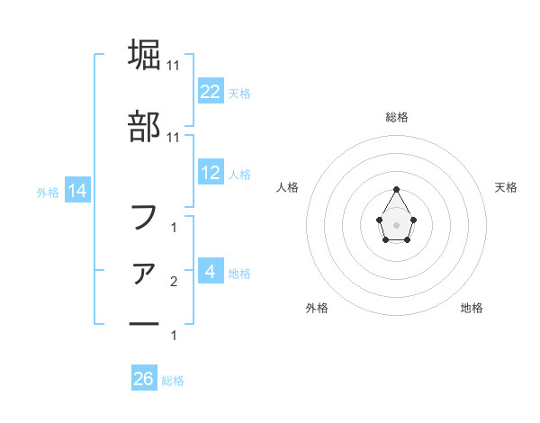 堀部 ファーさんを姓名の画数から五運を鑑定