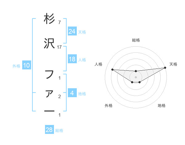 杉沢 ファーさんを姓名の画数から五運を鑑定