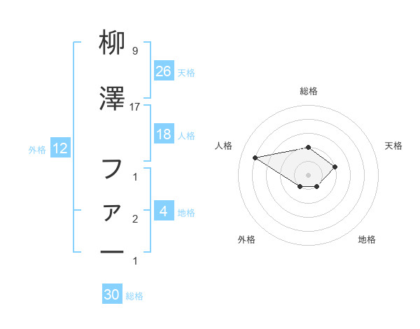 柳澤 ファーさんを姓名の画数から五運を鑑定