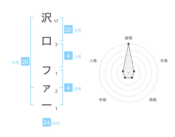 沢口 ファーさんを姓名の画数から五運を鑑定