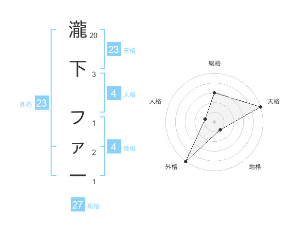 瀧下 ファーさんを姓名の画数から五運を鑑定