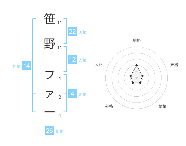 笹野 ファーさんの総格は26画の2点!