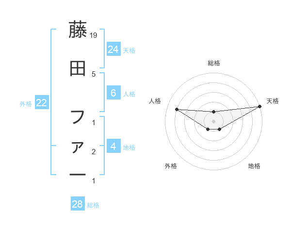 藤田 ファーさんを姓名の画数から五運を鑑定