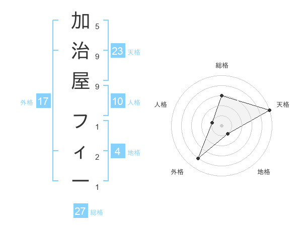 加治屋 フィーさんの天格は23画の5点