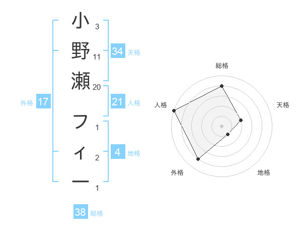 小野瀬 フィーさんの総格は38画の4点!