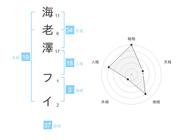 海老澤 フイさんを姓名の画数から五運を鑑定