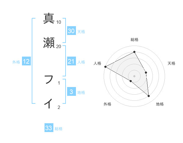 真瀬 フイさんの天格は30画の2点!