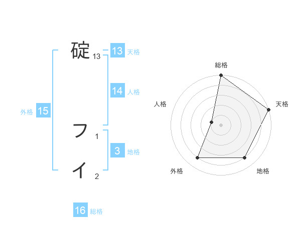 碇 フイさんの天格は13画の5点!
