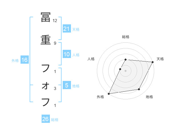 冨重 フォフさんの天格は21画の5点!