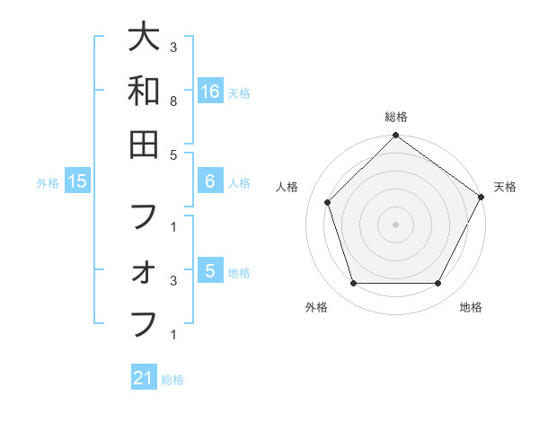 大和田 フォフさんを姓名の画数から五運を鑑定
