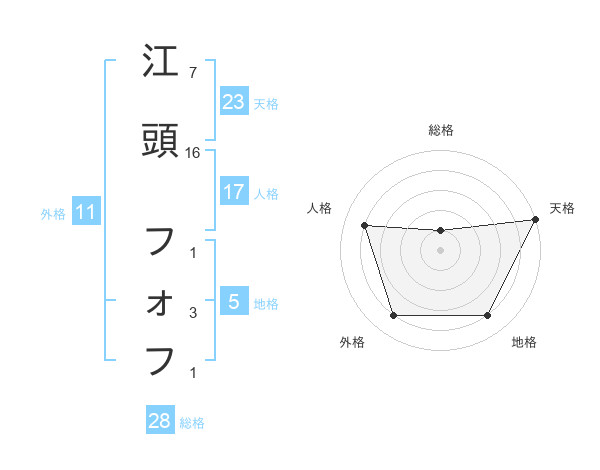 江頭 フォフさんの天格は23画の5点!