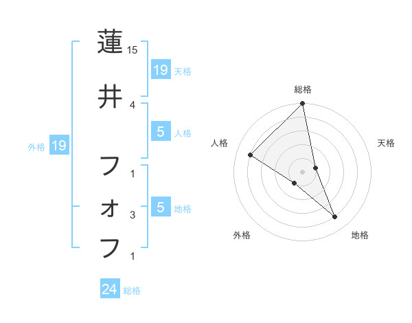 蓮井 フォフさんの地格は5画の4点!