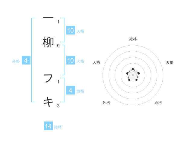 一柳 フキさんの総格は14画の1点!