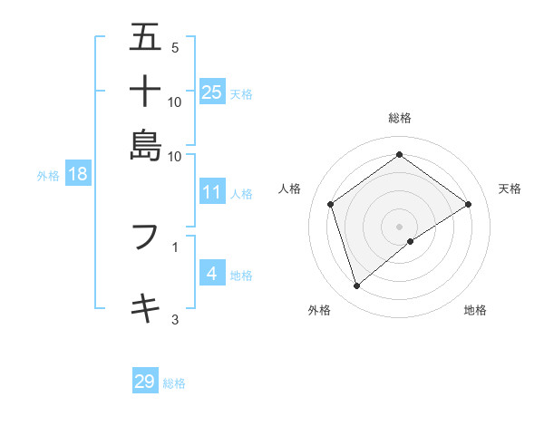 五十島 フキさんの総格は29画の4点!