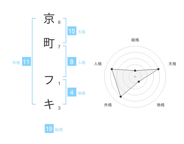 京町 フキさんの天格は15画の4点!