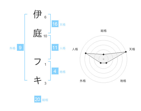 伊庭 フキさんの総格は20画の1点!