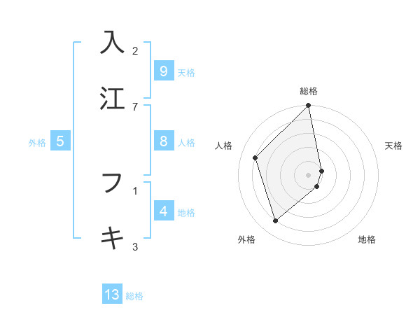 入江 フキさんの総格は13画の5点!