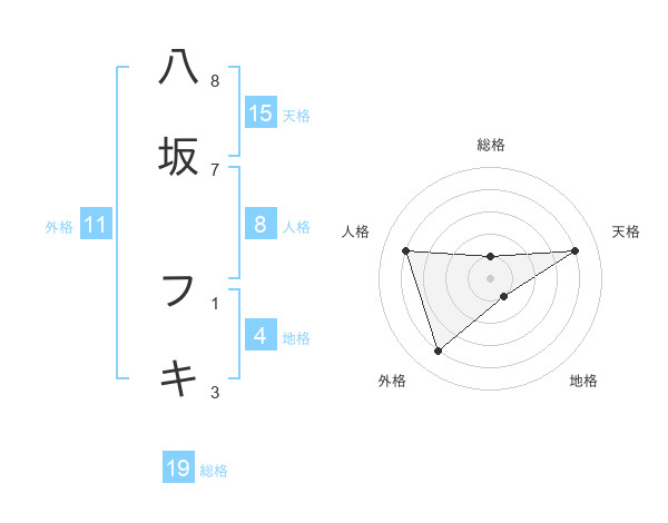 八坂 フキさんの天格は15画の4点!
