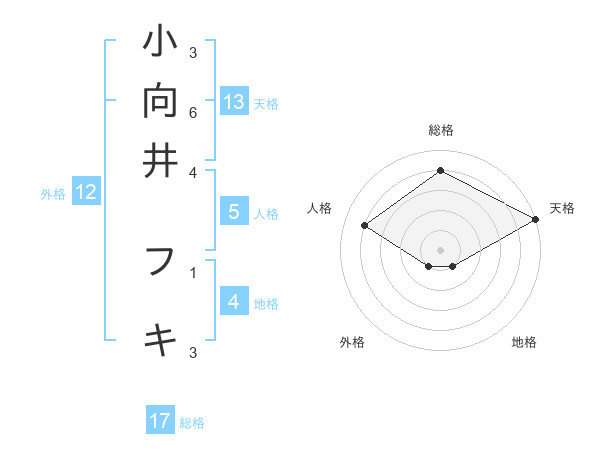 小向井 フキさんの天格は13画の5点!
