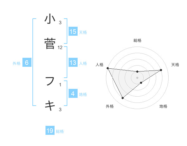 小菅 フキさんの天格は15画の4点!