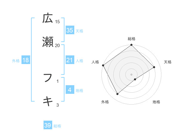 広瀬 フキさんの総格は39画の5点!