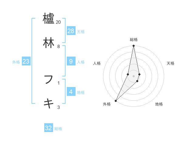 櫨林 フキさんを姓名の画数から五運を鑑定