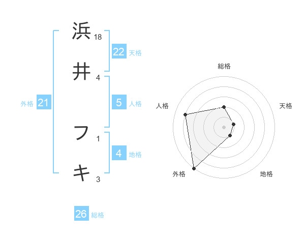 浜井 フキさんの総格は26画の2点!
