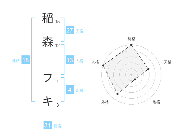 家系が持つ宿命的な運勢を表します。祖先から受け継いだ苗字ですので自分の力が及びません。家柄を象徴します。