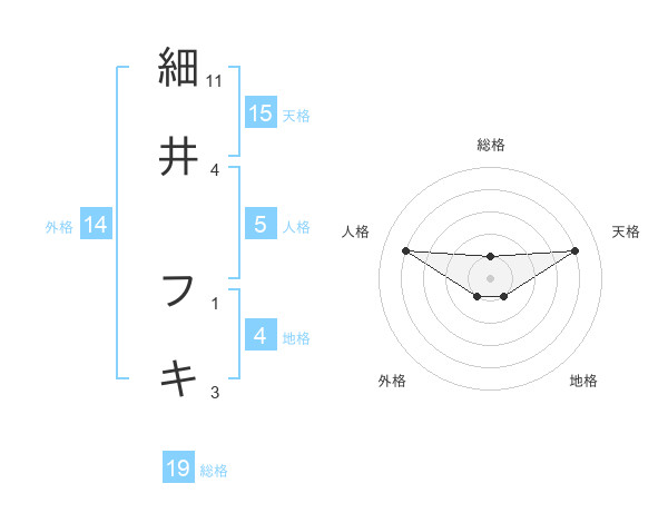 細井 フキさんの天格は15画の4点!