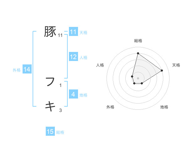 豚 フキさんの総格は15画の4点!