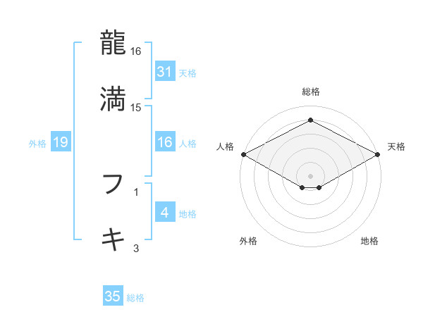 龍満 フキさんの総格は35画の4点!