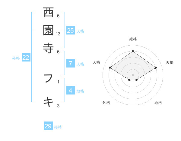西園寺 フキさんの天格は25画の4点!