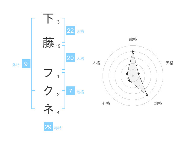 下藤 フクネさんを姓名の画数から五運を鑑定