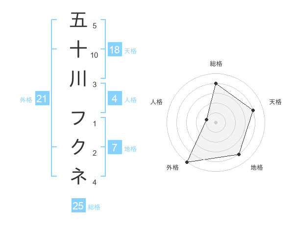 五十川 フクネさんを姓名の画数から五運を鑑定