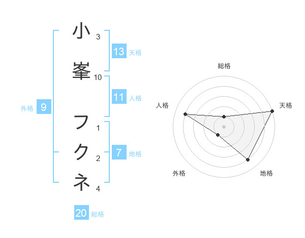 小峯 フクネさんの天格は13画の5点!