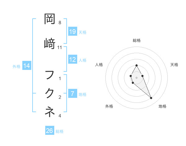 岡﨑 フクネさんを姓名の画数から五運を鑑定